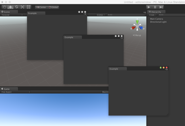 "Window/Example" 메뉴를 실행해서 표시합니다. 실행하기 위해서는 EditorWindow를 새로 작성합니다. 7.4 EditorWindow.GetWindow EditorWindow를 작성할 경우, [다수의 존재를 허가하는 EditorWindow]와 [1개만 허가하는 EditorWindow] 2종류를 생각해볼 수 있습니다.다수의 존재를 허가하는EditorWindow는 방금전 설명한 EditorWindow.CreateInstance를 사용해 EditorWindow를 작성해 표시합니다. [1개만 허가하는 EditorWindow] [이미 EditorWindow가 존재하고 있는 경우에는 생성하지 않는다]라는 확인처리를 구현하지 않으면 안됩니다.