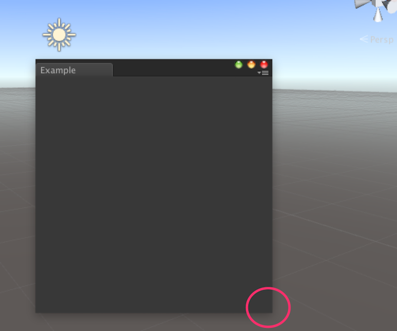 우측 하단에 있는 사이즈조절하는 3각 마크가 사라집니다. EditorWindow.minSize와 EditorWindow.maxSize에 의해 EditorWindow의 크기를 제한할 수 있습니다. 최소 수치와 최대 수치가 같으면 EditorWindow의 크기를 변경할 필요가 없다고 판단해서 우측 하단의 3각 마크가 표시되지 않습니다.